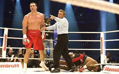 Emanuel’s voice rang in his fighter’s ears. It echoed from ringside throughout the entire 12th round as Klitschko fought with renewed intent, landing hard shots aplenty, eventually halting Chambers with just seconds to spare (the end result pictured above).